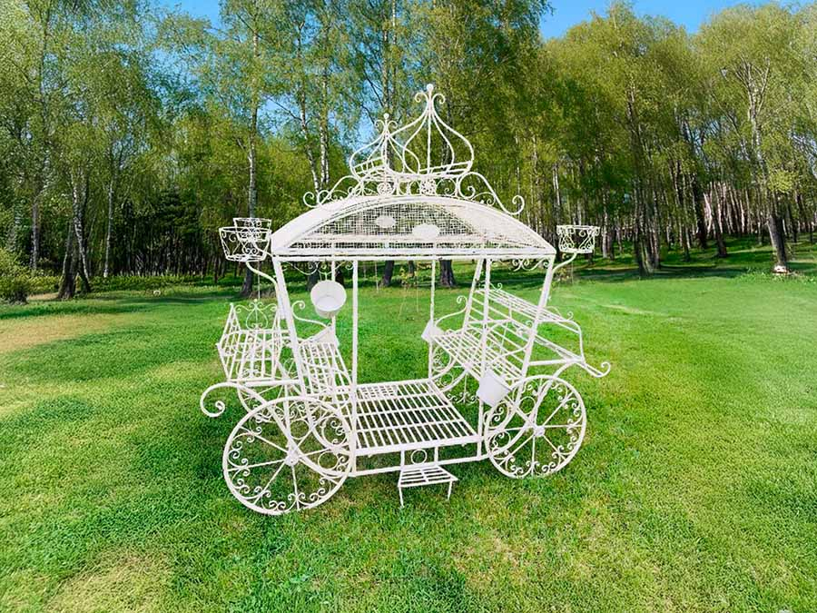 210 000 рублейMetal body decorated with artistic wrought-iron elements. Inside the carriage, there are benches. Painted with auto enamel. Color customizable according to customer preference.